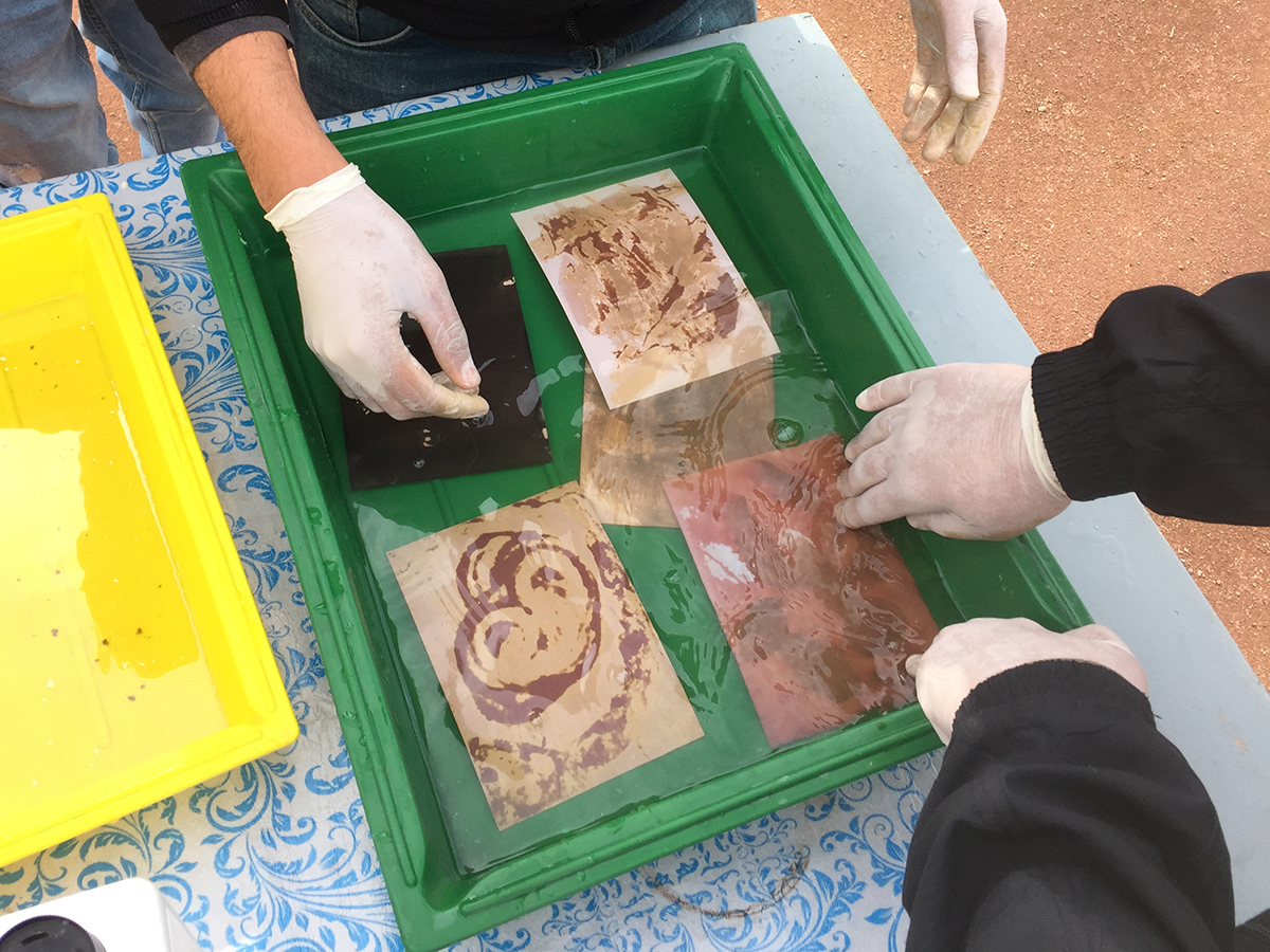 Delivered in the Arab League Park as part of the No Logo tour 2022, this workshop invited the participants to experiment with the chemigram printing technique.